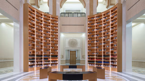 Современная библиотека с книгами о культуре и истории ОАЭ.